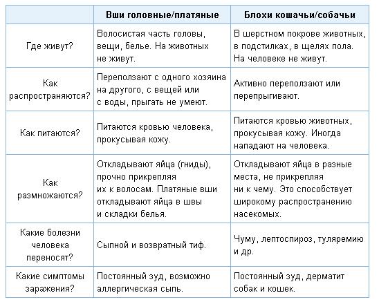 Nous en savons assez sur l'infestation par les poux de tête - les poux de tête - mais parfois nous confondons certains faits de la vie des poux et des puces en raison de la similitude de leur mode de vie parasitaire. Pour clarifier, nous avons compilé une petite tablette qui montre les principales différences entre ces types d'insectes.