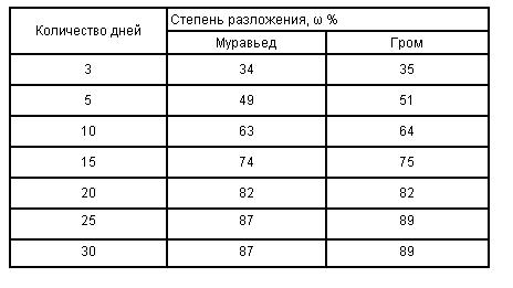 Au cours des travaux, il a été constaté que dans les préparations "Thunder" et "Anteater" la dissociation du diazinon se produit avec un degré de décomposition différent. Les résultats de l'expérience sont présentés dans le tableau.