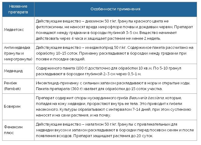 Les jardiniers expérimentés recommandent de traiter le système racinaire avec ces médicaments, car ils sont les moins toxiques pour les plantes et assez efficaces pour combattre l'ours.