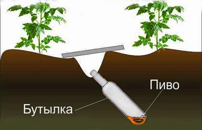 Ou creusez un bidon d'un demi-litre avec un demi-verre de bière fraîche, inclinez-le avec du carton épais ou du fer, et après une semaine et demie, déterrez des pièges avec des parasites qui s'y sont introduits.
