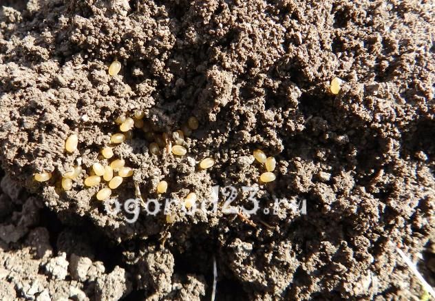 L'appât peut également être posé 2-3 jours avant le semis ou dans les allées après la levée ou la plantation de semis, en les plantant dans le sol à une profondeur de 2-3 cm.