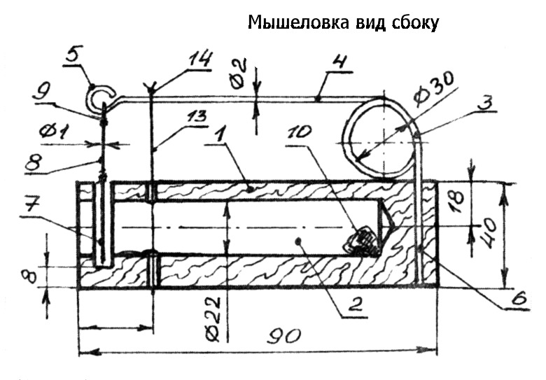 L'appât s'accroche également au même hameçon. La souris, tirant sur l'appât, libère le cadre qui tue l'animal. Après chaque rongeur capturé, ce piège doit être remis en place.