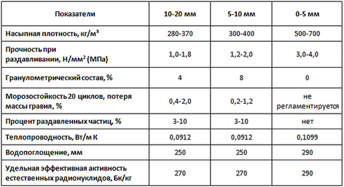 L'argile expansée peut avoir différentes tailles fractionnaires. Ainsi, il est produit sous forme de sable, de gravier fin et moyen, ainsi que de gros granules jusqu'à 10-25 mm.