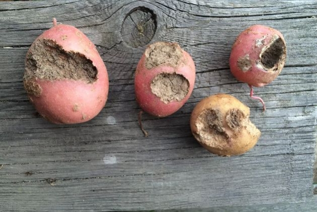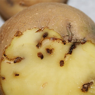 - Coups et trous de ver dans la peau et la pulpe des tubercules.