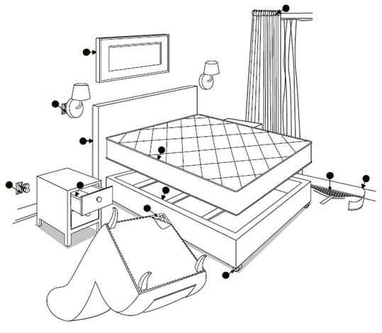 Les punaises de lit se sentent bien dans ces endroits où tout espace les entoure de tous les côtés. Il est nécessaire d'inspecter soigneusement tous les cadres de peintures, photographies et miroirs de la maison, les parasites se sentent bien à côté des radiateurs chauffants.