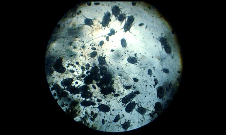 Pour augmenter la probabilité de détecter les parasites, 2-3 gouttes de mascara noir peuvent être placées sur le grattage, qui colorera tout sauf les tiques elles-mêmes, elles peuvent être mieux vues sur un fond noir en raison du contraste. La présence de plusieurs grains légers sur un coton-tige peut indiquer la présence de parasites.
