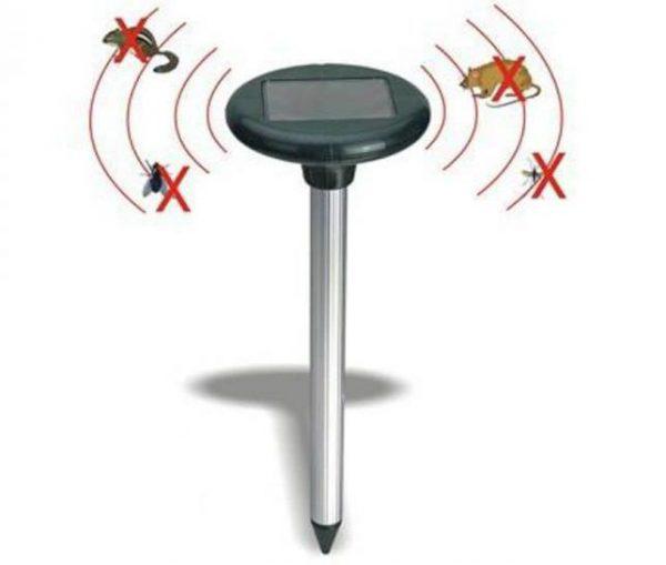Solaire. Cet appareil est alimenté par des panneaux solaires. Il est souvent installé dans le pays pour effrayer les rongeurs. Il est équipé d'une lampe LED transparente avec une jambe, que vous avez juste besoin de coller dans le sol. Le dispositif de travail est effectué en douceur.